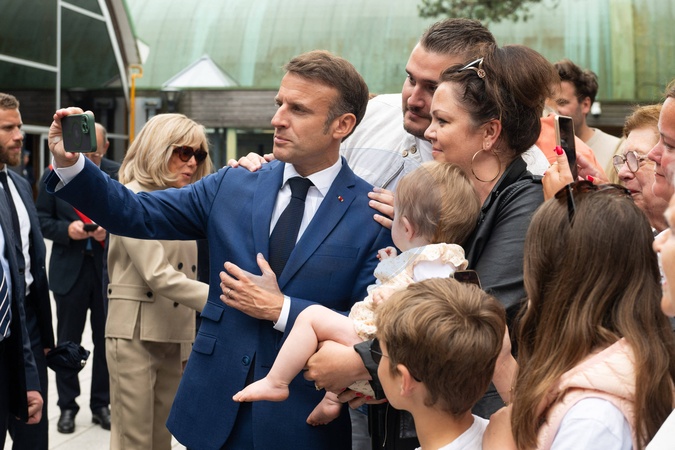 Le président Emmanuel Macron lors du vote pour le premier tour des élections législatives à la salle des Quatre Saisons au Touquet le 30 juin 2024 © Jeanne Accorsini / Pool / Bestimage French President Emmanuel Macron and Brigitte Macron arrive in the polling station of le Touqet Paris Plage for the first round of early legislative elections. Crowd bath and selfie are taking with Le touquet people. Salle des Quatre Saisons, polling station in Le Touquet Paris Plage, northern France, Sunday June 30, 2024.//ACCORSINIJEANNE_VOTE.0013/Credit:JEANNE ACCORSINI/SIPA/2406301538
