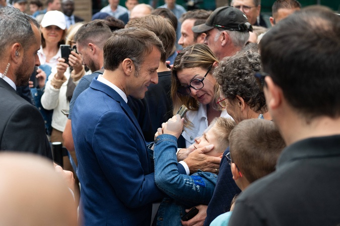 Le président Emmanuel Macron lors du vote pour le premier tour des élections législatives à la salle des Quatre Saisons au Touquet le 30 juin 2024 © Jeanne Accorsini / Pool / Bestimage French President Emmanuel Macron arrives in the polling station of le Touqet Paris Plage for the first round of early legislative elections. Crowd bath and selfie for the president with Le touquet people. Salle des Quatre Saisons, polling station in Le Touquet Paris Plage, northern France, Sunday June 30, 2024.//ACCORSINIJEANNE_VOTE.0031/Credit:JEANNE ACCORSINI/SIPA/2406301631