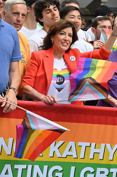 Governor Kathy Hochul marches in the 2024 NYC Pride March on Fifth Avenue in New York, New York, USA on June 30, 2024., Credit:Robin Platzer / Avalon