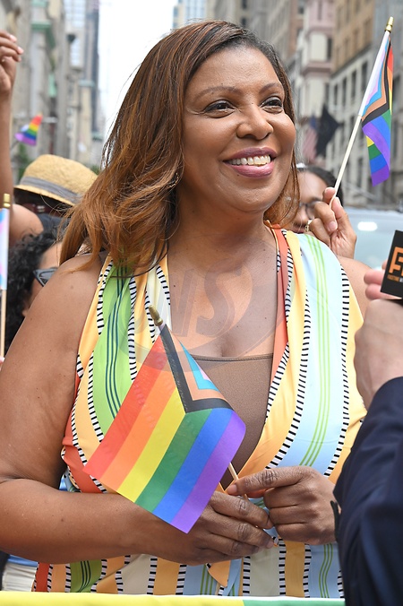 NY Attorney General Letisha James marches in the 2024 NYC Pride March on Fifth Avenue in New York, New York, USA on June 30, 2024., Credit:Robin Platzer / Avalon
