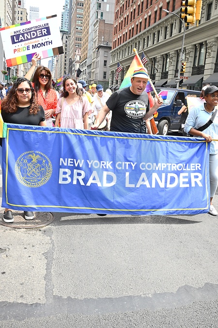 New York City Comptroller Brad Lander marches in the 2024 NYC Pride March on Fifth Avenue in New York, New York, USA on June 30, 2024., Credit:Robin Platzer / Avalon