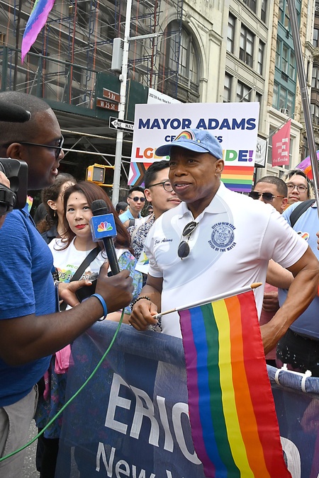 New York City Mayor Eric Adams marches in the 2024 NYC Pride March on Fifth Avenue in New York, New York, USA on June 30, 2024., Credit:Robin Platzer / Avalon
