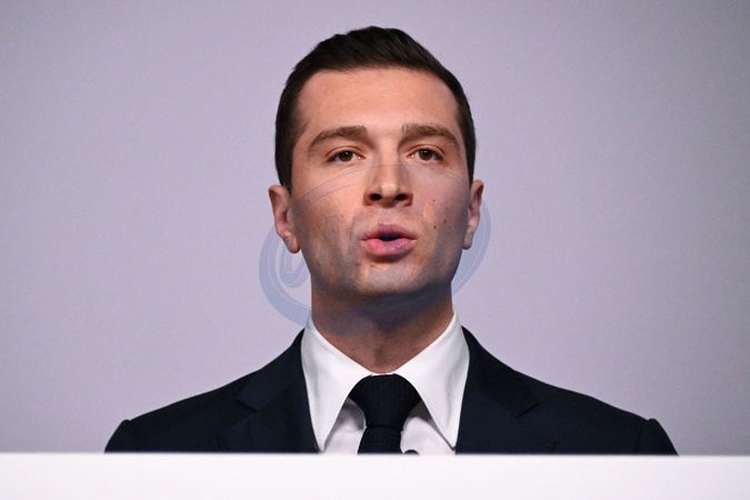 Jordan Bardella wygłasza przemówienie podczas wieczoru wyników pierwszej tury wyborów do organów legislacyjnych w Paryżu