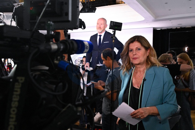 Jordan Bardella wygłasza przemówienie podczas wieczoru wyników pierwszej tury wyborów do organów legislacyjnych w Paryżu