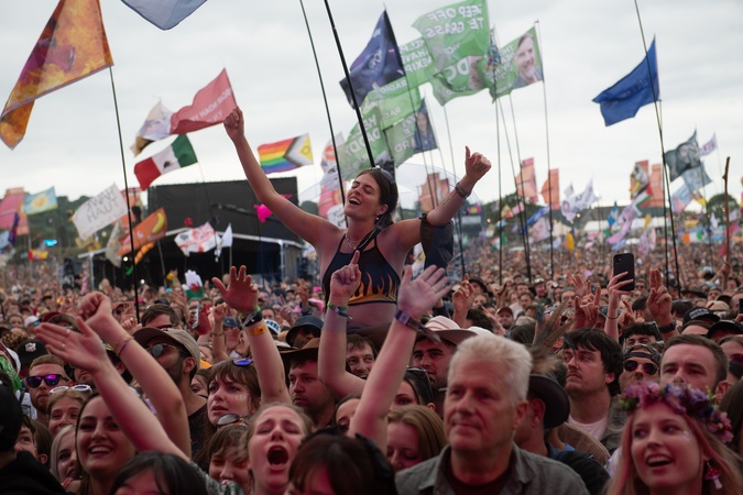 The crowd as Canadian singer-songwriter Avril Lavigne performs on the Pyramid Stage at Glastonbury Festival 2024 Sunday at Worthy Farm, Pilton in Glastonbury, England, UK on Sunday 30 June 2024., Credit:Justin Ng / Avalon