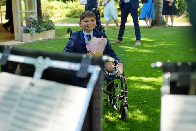 EMBARGOED TO 0001 MONDAY JULY 1Handout photo issued by Buckingham Palace of Tony Hudgell, from West Malling in Kent, during a private tea party on Wednesday June 26 in the gardens Summer House at Buckingham Palace, London hosted for him and Lyla O'Donovan from Catterick and their families by Queen Camilla. NOTE TO EDITORS: This handout photo may only be used in for editorial reporting purposes for the contemporaneous illustration of events, things or the people in the image or facts mentioned in the caption. Reuse of the picture may require further permission from the copyright holder., Credit:Buckingham Palace / Avalon