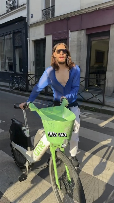 Screenshot of Jared Leto, latest post on social media, 30th June 2024.Quote:"An evening bike ride through Paris.", Credit:B4859 / Avalon