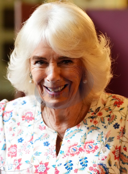 Edinburgh, Scotland, 2 July 2024: Queen Camilla (centre) speaks with guest at a celebration for those who promote Scottish Literacy at the Palace of Holyroodhouse in Edinburgh, including book shop owners and authors, and representatives from the Edinburgh International Book Festival and the Scottish Book Trust., Credit:Andrew Milligan / Avalon