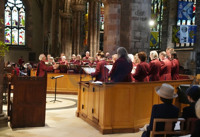 Edinburgh, Scotland, 03 July 2024: The choir singing during the Order of the Thistle Service at St Giles' Cathedral in Edinburgh, for the installation to the Order of the Queen, the Duke of Edinburgh, Baroness Black of Strome LT, Baroness Kennedy of The Shaws LT and Sir Geoff Palmer KT., Credit:Andrew Milligan / Avalon