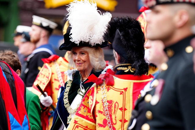 Edinburgh, Scotland, 03 July 2024: Queen Camilla leaves after the Order of the Thistle Service at St Giles' Cathedral in Edinburgh, where she was installed to the Order along with the Duke of Edinburgh, Baroness Black of Strome LT, Baroness Kennedy of The Shaws LT and Sir Geoff Palmer KT., Credit:Jane Barlow / Avalon