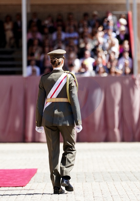 Le roi Felipe VI et la reine Letizia d’Espagne, et la princesse Leonor, lors de la cérémonie de remise des médailles à la nouvelle classe des sous-officiers de l'armée et de la Garde civile à Zaragoza