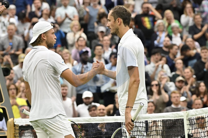 Daniił Miedwiediew pałkał Alexandre Muller 6/7(3), 7/6(4), 6/4, 7/5 w turniejach Wimbledonu w Londynie