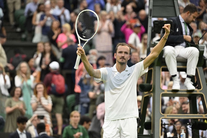 Daniił Miedwiediew pałkał Alexandre Muller 6/7(3), 7/6(4), 6/4, 7/5 w turniejach Wimbledonu w Londynie