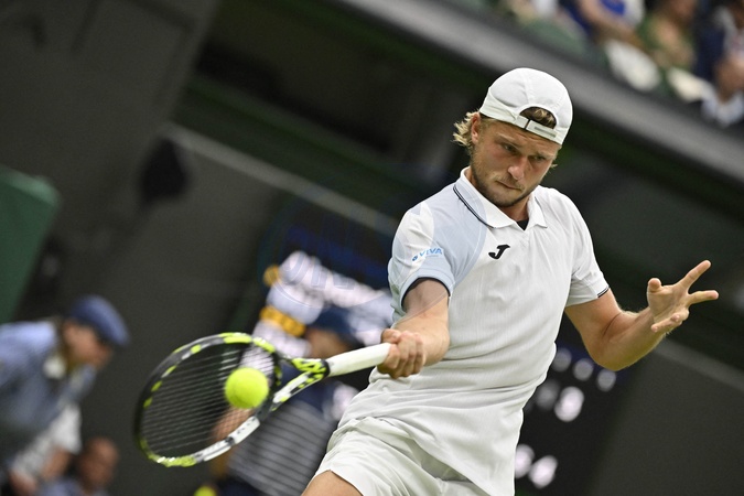 Daniił Miedwiediew pałkał Alexandre Muller 6/7(3), 7/6(4), 6/4, 7/5 w turniejach Wimbledonu w Londynie