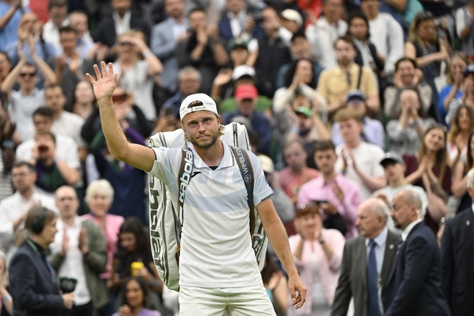 Daniił Miedwiediew pałkał Alexandre Muller 6/7(3), 7/6(4), 6/4, 7/5 w turniejach Wimbledonu w Londynie