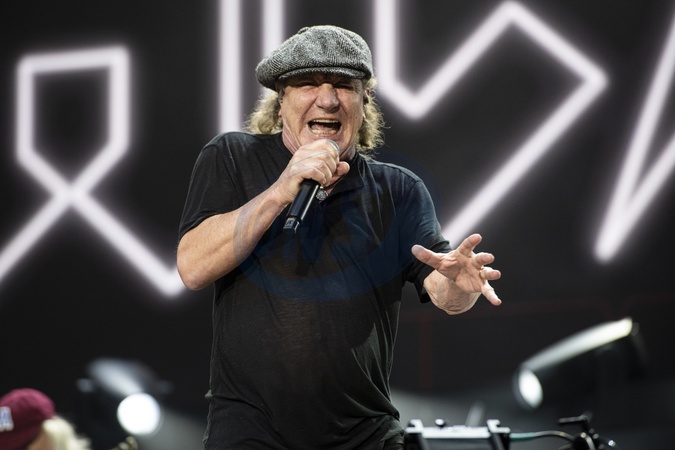 AC/DC performing live at Wembley Stadium, London on 3 July 2024Brian Johnson ,lead singerAC/DC are an Australian rock band formed in '73. It was founded by the Young brothers.Their music has been variously described as hard rock, blues rock and heavy metal, but the band calls it simply "rock and roll". They are cited as a formative influence on the new wave of British heavy metal bands. AC/DC were inducted into the Rock and Roll Hall of Fame in '03.This is their Power up tour (styled PWR/UP Tour) for their seventeenth studio album Power Up, released '20., Credit:Dafydd Owen / Avalon