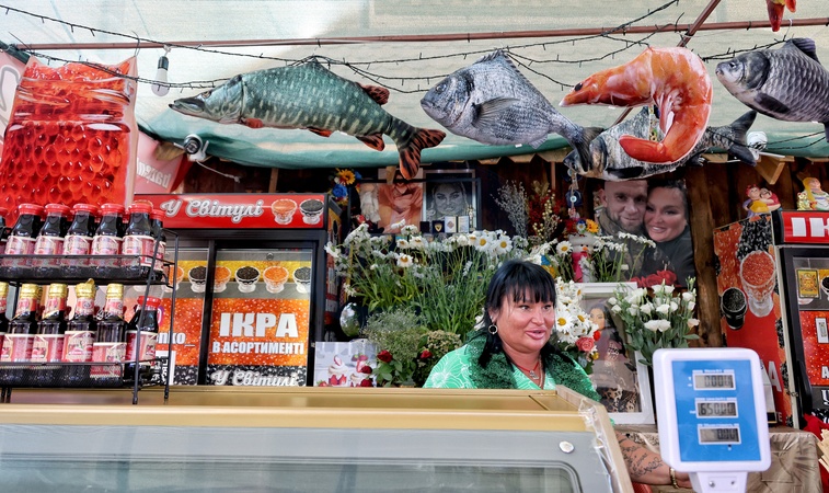 ODESA, UKRAINE - JUNE 18, 2024 - A fishmonger is behind a stall at the Pryvoz Market, Odesa, southern Ukraine., Credit:Nina Liashonok / Avalon