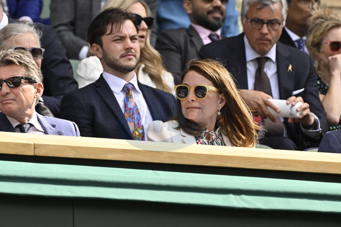 Carole Middleton et son mari Michael Middleton dans la Royal Box du tournoi de Wimbledon à Londres, Royaume Uni, le 4 juillet 2024. © Chryslene Caillaud/Panoramic/Bestimage Carole Middleton and her husband Michael Middleton in the Royal Box at the Wimbledon Championships in London, United Kingdom on July 4, 2024.