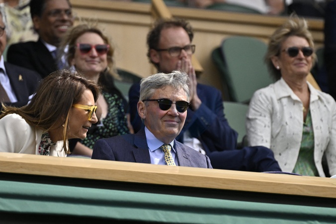Carole Middleton et son mari Michael Middleton dans la Royal Box du tournoi de Wimbledon à Londres, Royaume Uni, le 4 juillet 2024. © Chryslene Caillaud/Panoramic/Bestimage Carole Middleton and her husband Michael Middleton in the Royal Box at the Wimbledon Championships in London, United Kingdom on July 4, 2024.