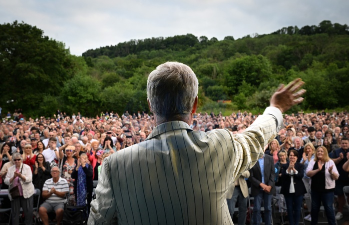 Reform UK leader Nigel Farage speaks at an election rally at Trago Mills, Newton Abbot