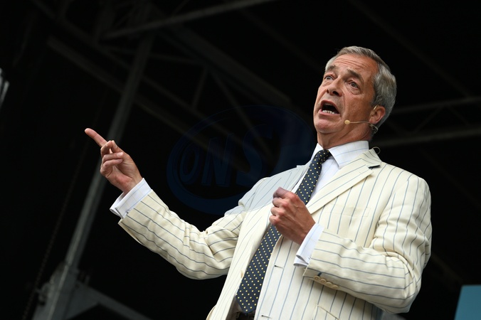 Reform UK leader Nigel Farage speaks at an election rally at Trago Mills, Newton Abbot