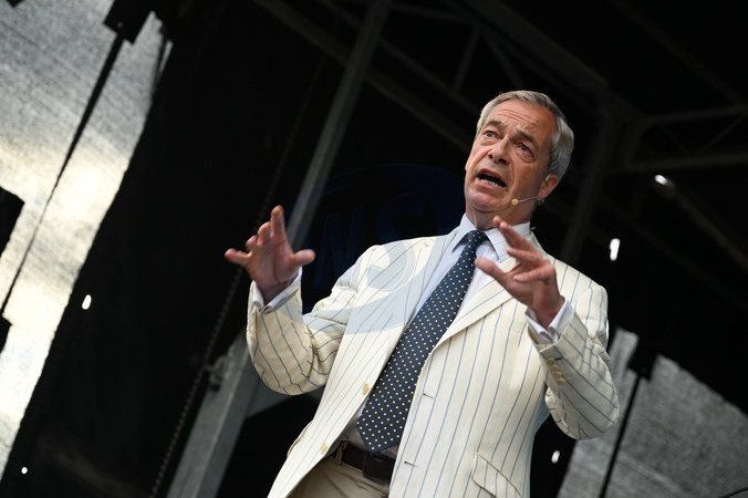 Reform UK leader Nigel Farage speaks at an election rally at Trago Mills, Newton Abbot