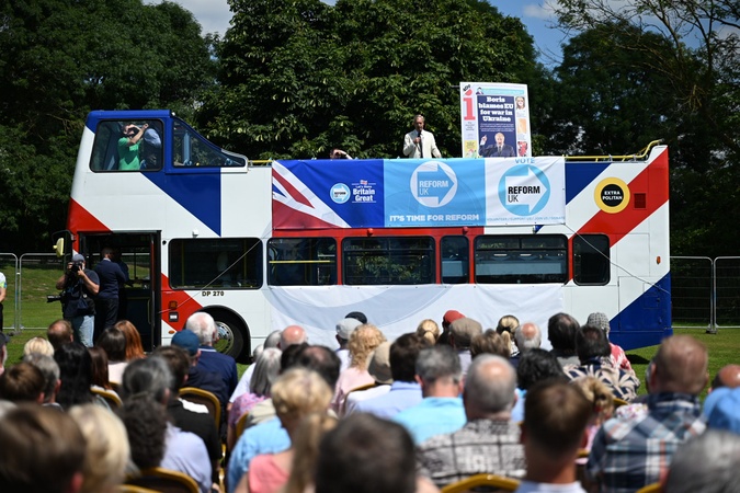 Reform UK leader Nigel Farage speaks at an election rally at the Mercure Great Danes Hotel, Maidstone, United Kingdom, on 24 June 2024., Credit:Stuart Mitchell / Avalon