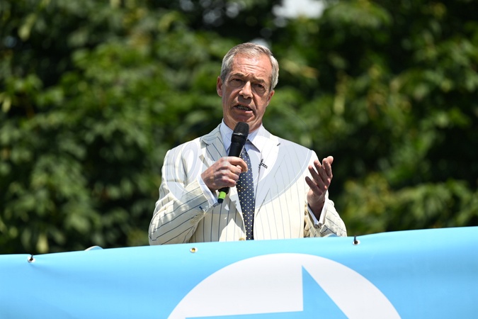 Reform UK leader Nigel Farage speaks at an election rally at the Mercure Great Danes Hotel, Maidstone, United Kingdom, on 24 June 2024., Credit:Stuart Mitchell / Avalon
