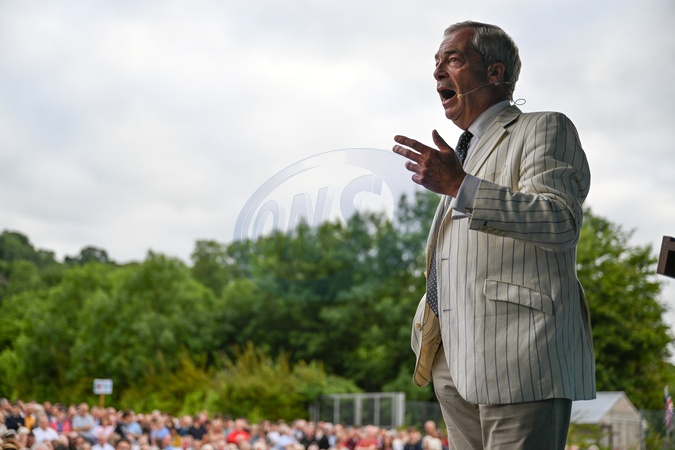 Reform UK leader Nigel Farage speaks at an election rally at Trago Mills, Newton Abbot, United Kingdom, on 24 June 2024., Credit:Stuart Mitchell / Avalon