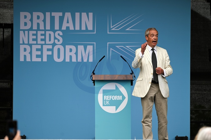Reform UK leader Nigel Farage speaks at an election rally at Trago Mills, Newton Abbot