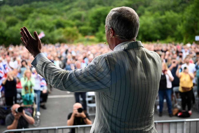 Reform UK leader Nigel Farage speaks at an election rally at Trago Mills, Newton Abbot