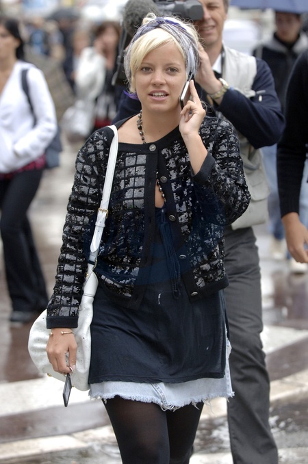 Angielska piosenkarka Lilly Allen spaceruje w deszczu po alei La Croisette w Cannes