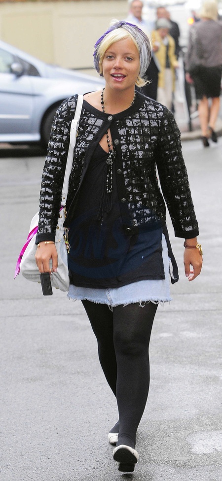 Angielska piosenkarka Lilly Allen spaceruje w deszczu po alei La Croisette w Cannes