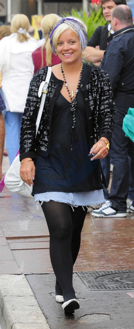 Angielska piosenkarka Lilly Allen spaceruje w deszczu po alei La Croisette w Cannes