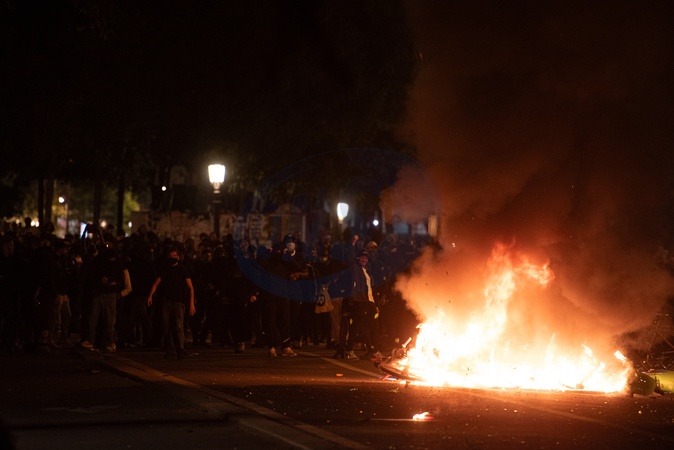 Affrontements entre émeutiers et forces de l'ordre suite à la victoire du nouveau front populaire, lors de la soirée électorale place de la République