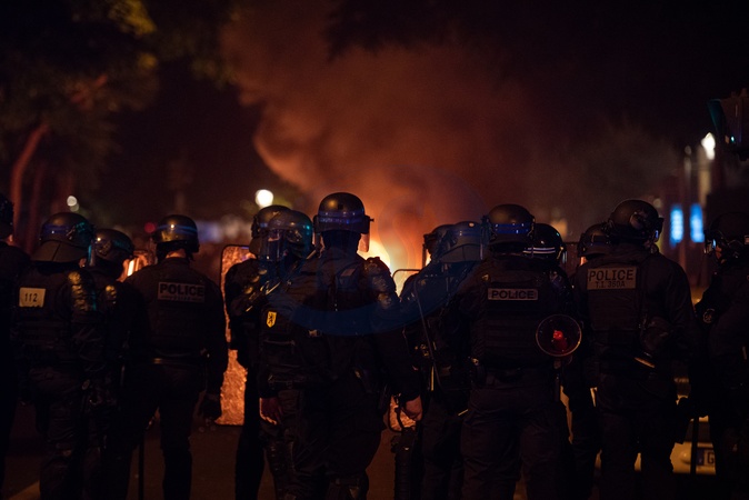 Affrontements entre émeutiers et forces de l'ordre suite à la victoire du nouveau front populaire, lors de la soirée électorale place de la République