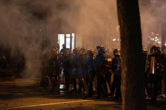 Affrontements entre émeutiers et forces de l'ordre suite à la victoire du nouveau front populaire, lors de la soirée électorale place de la République