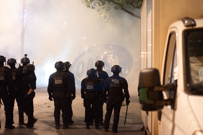 Affrontements entre émeutiers et forces de l'ordre suite à la victoire du nouveau front populaire, lors de la soirée électorale place de la république, nombreux projectiles lancés, barricades incendiées et quelques personnes interpellées, à Paris dans la nuit du 7 juillet 2024. © Florian Poitout/Bestimage Clashes between rioters and police following the victory of the new popular front, during the election evening at place de la republique, numerous projectiles thrown, barricades on fire and a few people arrested, in Paris on the night of July 7, 2024 to July 8, 2024. Clashes between rioters and police following the victory of the new popular front, during the election evening at place de la republique, numerous projectiles thrown, barricades on fire and a few people arrested, in Paris on the night of July 7, 2024 to July 8, 2024, photo by Florian Poitout