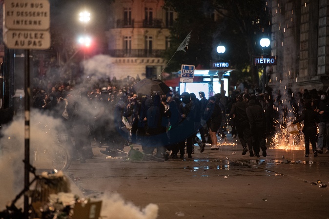 Affrontements entre émeutiers et forces de l'ordre suite à la victoire du nouveau front populaire, lors de la soirée électorale place de la République