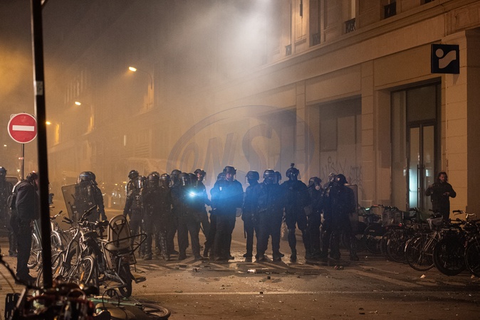 Affrontements entre émeutiers et forces de l'ordre suite à la victoire du nouveau front populaire, lors de la soirée électorale place de la république, nombreux projectiles lancés, barricades incendiées et quelques personnes interpellées, à Paris dans la nuit du 7 juillet 2024. © Florian Poitout/Bestimage Clashes between rioters and police following the victory of the new popular front, during the election evening at place de la republique, numerous projectiles thrown, barricades on fire and a few people arrested, in Paris on the night of July 7, 2024 to July 8, 2024. Clashes between rioters and police following the victory of the new popular front, during the election evening at place de la republique, numerous projectiles thrown, barricades on fire and a few people arrested, in Paris on the night of July 7, 2024 to July 8, 2024, photo by Florian Poitout