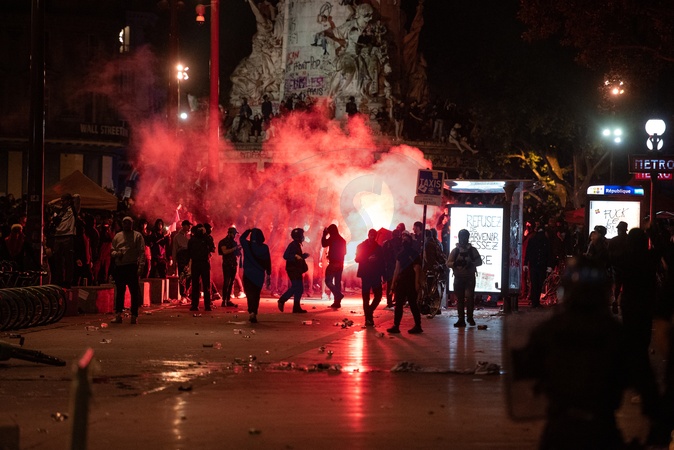 Affrontements entre émeutiers et forces de l'ordre suite à la victoire du nouveau front populaire, lors de la soirée électorale place de la République