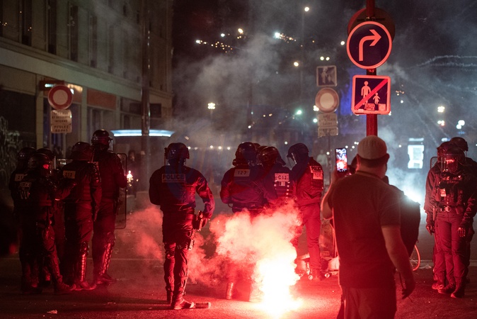 Affrontements entre émeutiers et forces de l'ordre suite à la victoire du nouveau front populaire, lors de la soirée électorale place de la République