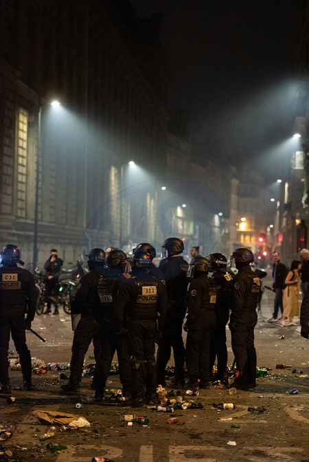 Affrontements entre émeutiers et forces de l'ordre suite à la victoire du nouveau front populaire, lors de la soirée électorale place de la République