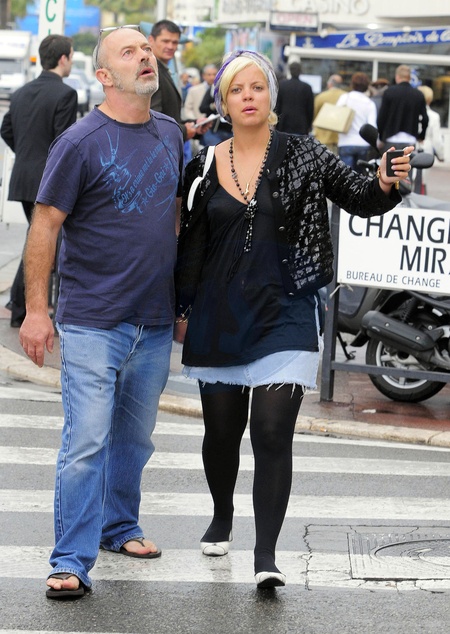 Lily Allen z ojcem Keith Allen spaceruja w deszczu po promenadzie Croisette w Cannes