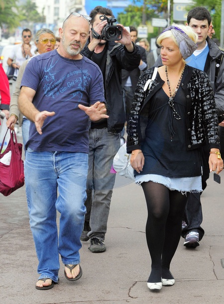 Lily Allen z ojcem Keith Allen spaceruja w deszczu po promenadzie Croisette w Cannes