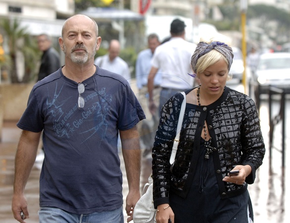 Lily Allen z ojcem Keith Allen spaceruja w deszczu po promenadzie Croisette w Cannes