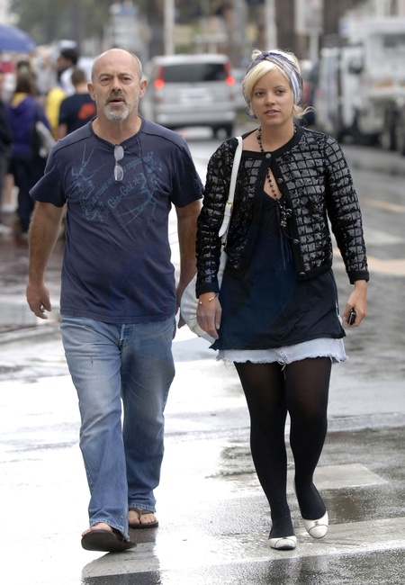 Lily Allen z ojcem Keith Allen spaceruja w deszczu po promenadzie Croisette w Cannes