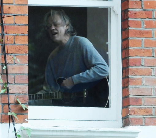 Bob Geldof gra w oknie swojego mieszkania, Londyn