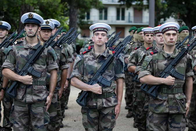 Répétition du défilé du 14 juillet , cette année avenue Foch à Paris le 12 juillet 2024. © Jeremy Melloul / Bestimage Rehearsal of the 14 July parade, this year on avenue Foch in Paris on 12 July 2024.