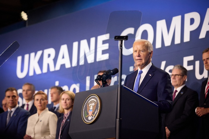 Le président américain Joseph Biden - Le 75ème sommet de l'OTAN à Washington s'est achevé par l'adoption du Pacte pour l'Ukraine, le 11 juillet 2024. Ce document vient compléter la déclaration commune du G7 adoptée il y a un an lors du précédent sommet de l'OTAN à Vilnius. Au total, 32 participants y ont déjà adhéré, tous présents aujourd'hui, dont 23 dirigeants de pays avec lesquels l'Ukraine a signé des accords bilatéraux de sécurité. © Ukraine Presidency via Bestimage The 75th NATO Summit in Washington concluded with the endorsement of the Ukraine Compact. This document serves as a supplement to the Joint G7 Declaration agreed upon a year ago at the previous NATO Summit in Vilnius. In total, 32 participants have already joined it, all of whom were present today, including 23 leaders of countries with which Ukraine has signed bilateral security agreements.